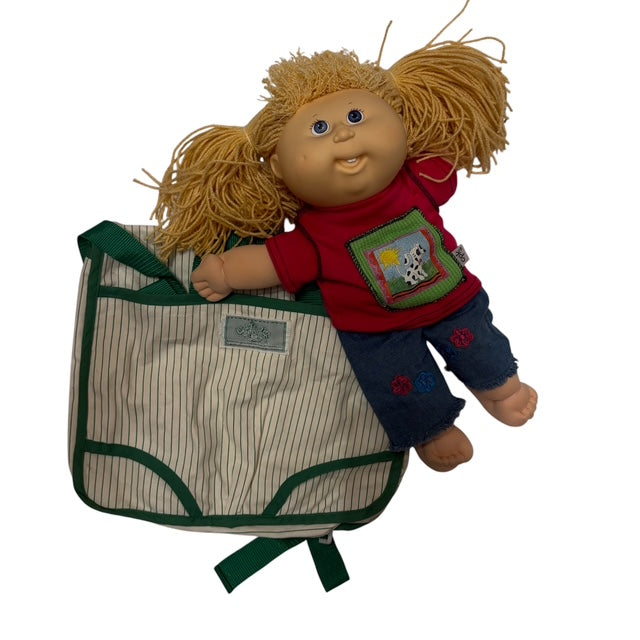 1990年の可愛いキャベツ人形の女の子です。大きさ約35センチです★キャベツ人形柄のバックパック付きです。中古になりますので多少の傷みや汚れがあります。
