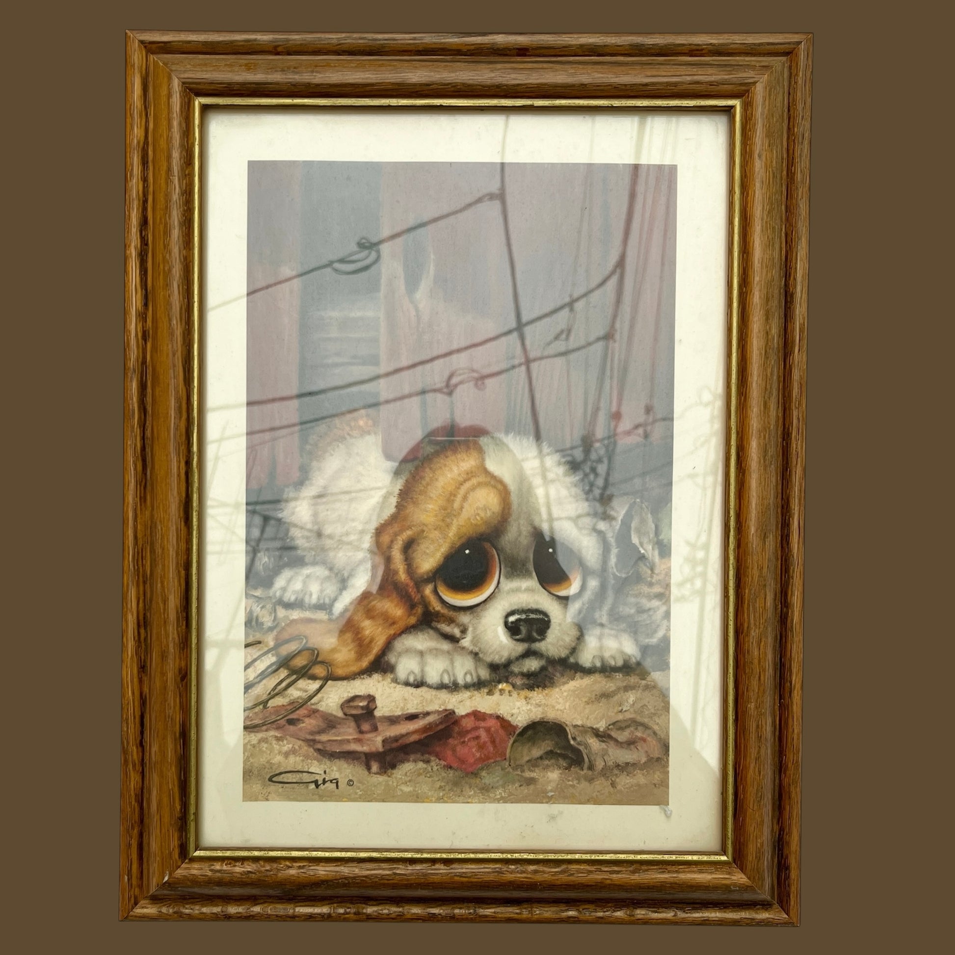 70's★GIG★絵画★額付き★フレーム付き★絵★ビンテージ★オールド★犬★イヌ★パピー★フィギュア★人形★ぬいぐるみ★Big Eyes★ビッグアイ